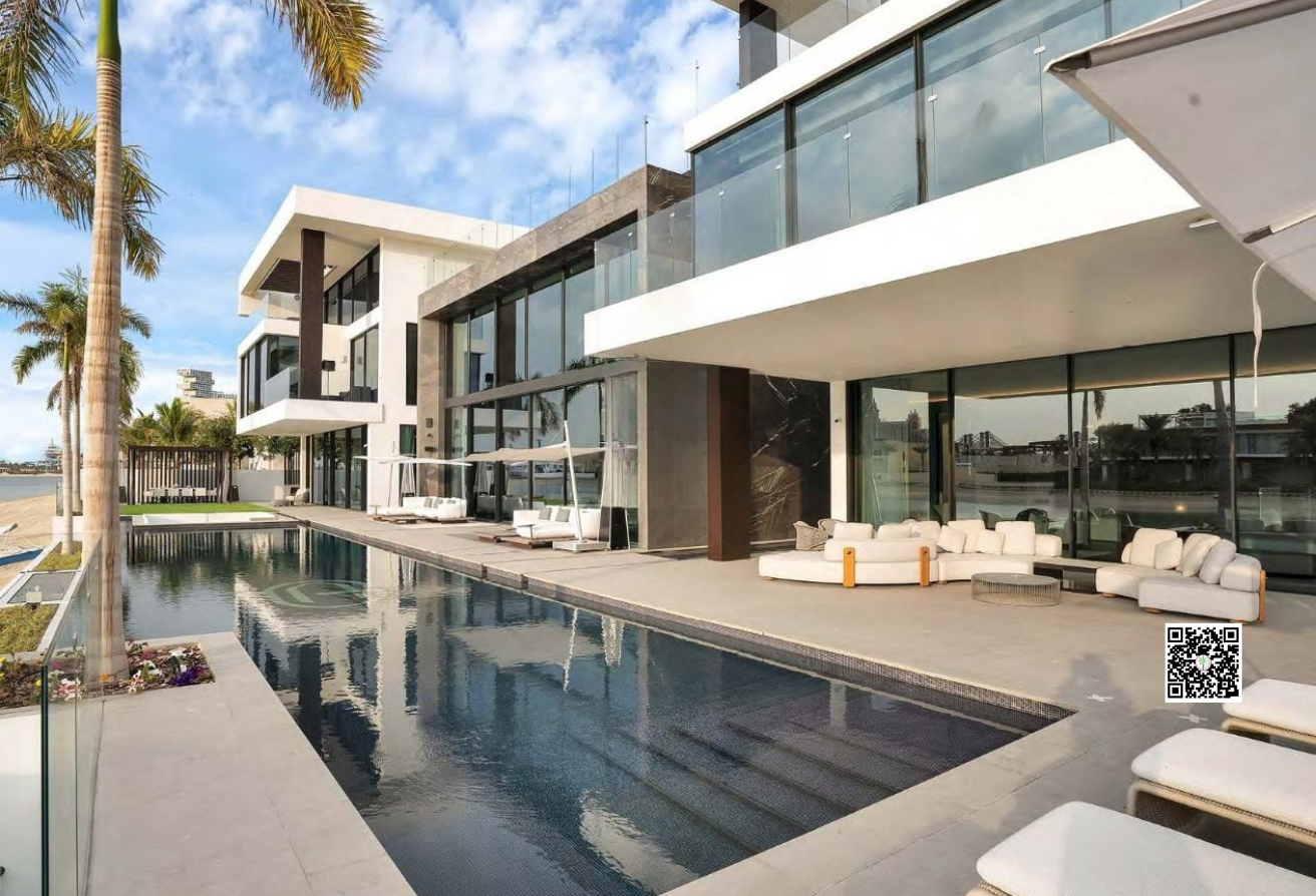 Experience Luxury Living in Villa Allegra. Situated on the covered Billionaire’s Row of Palm Jumeirah, this exquisite 5-bedroom villa presents an opportunity to live on the most desirable address in Dubai. Inspired by the contemporary style of Los Angeles, this custom built villa has been crafted with the finest materials, with a focus on modern & contemporary elegance. The exterior of Villa Allegra showcases an exquisite combination of grey marquina marble and imported grey tiles from Spain, creating a seamless color scheme throughout the property. Attention to detail was paramount, extending even to the driveway to maintain a consistent design language. Inside the villa, you'll find premium furniture from renowned brands such as Minotti, Giorgetti, and Paola Lenti, while the lighting fixtures are sourced from Henge, Viabizzuno & Qbo.