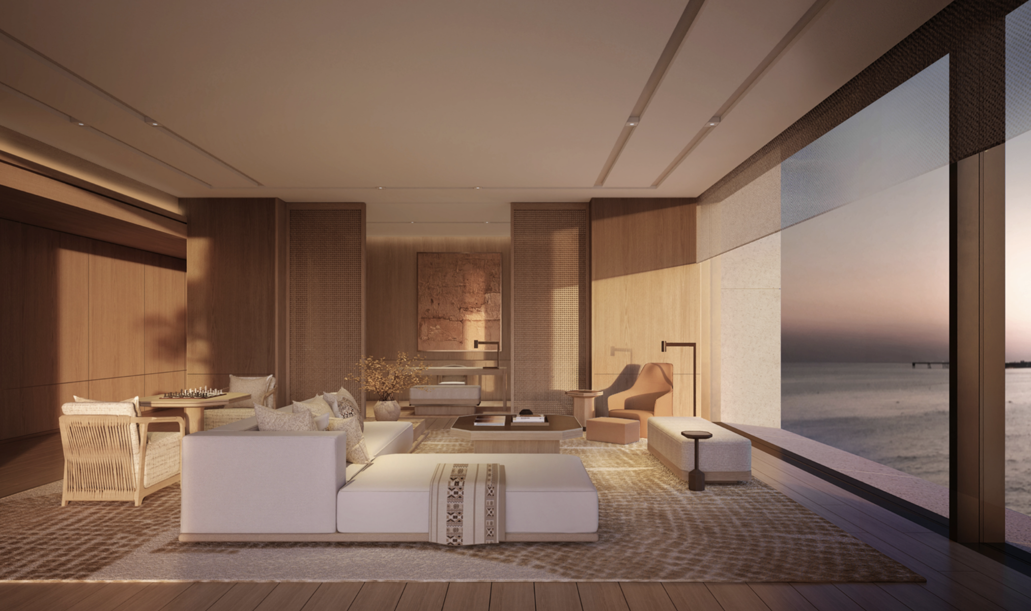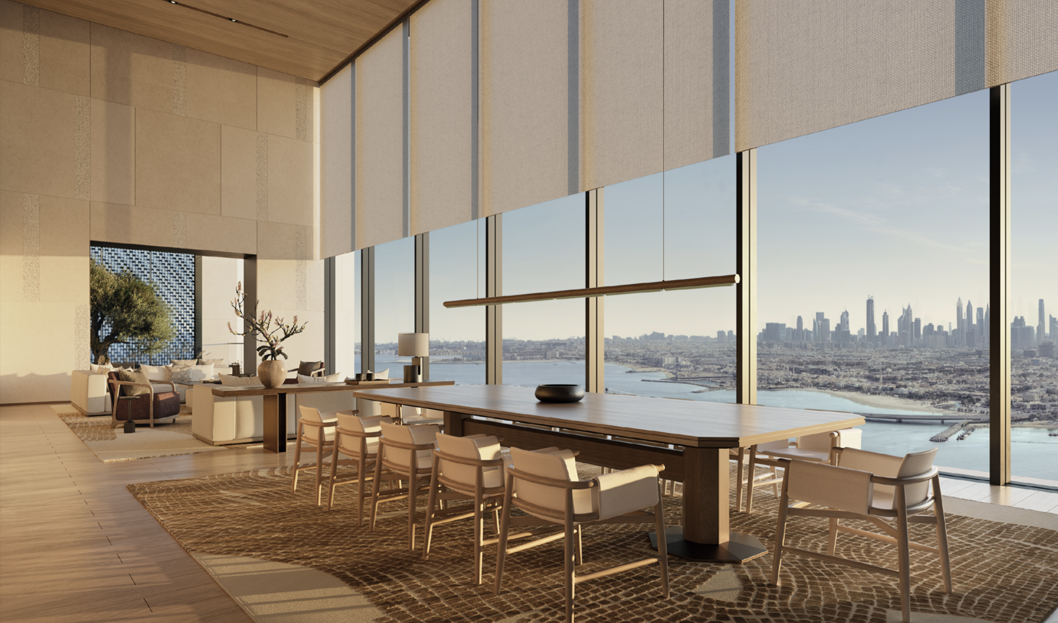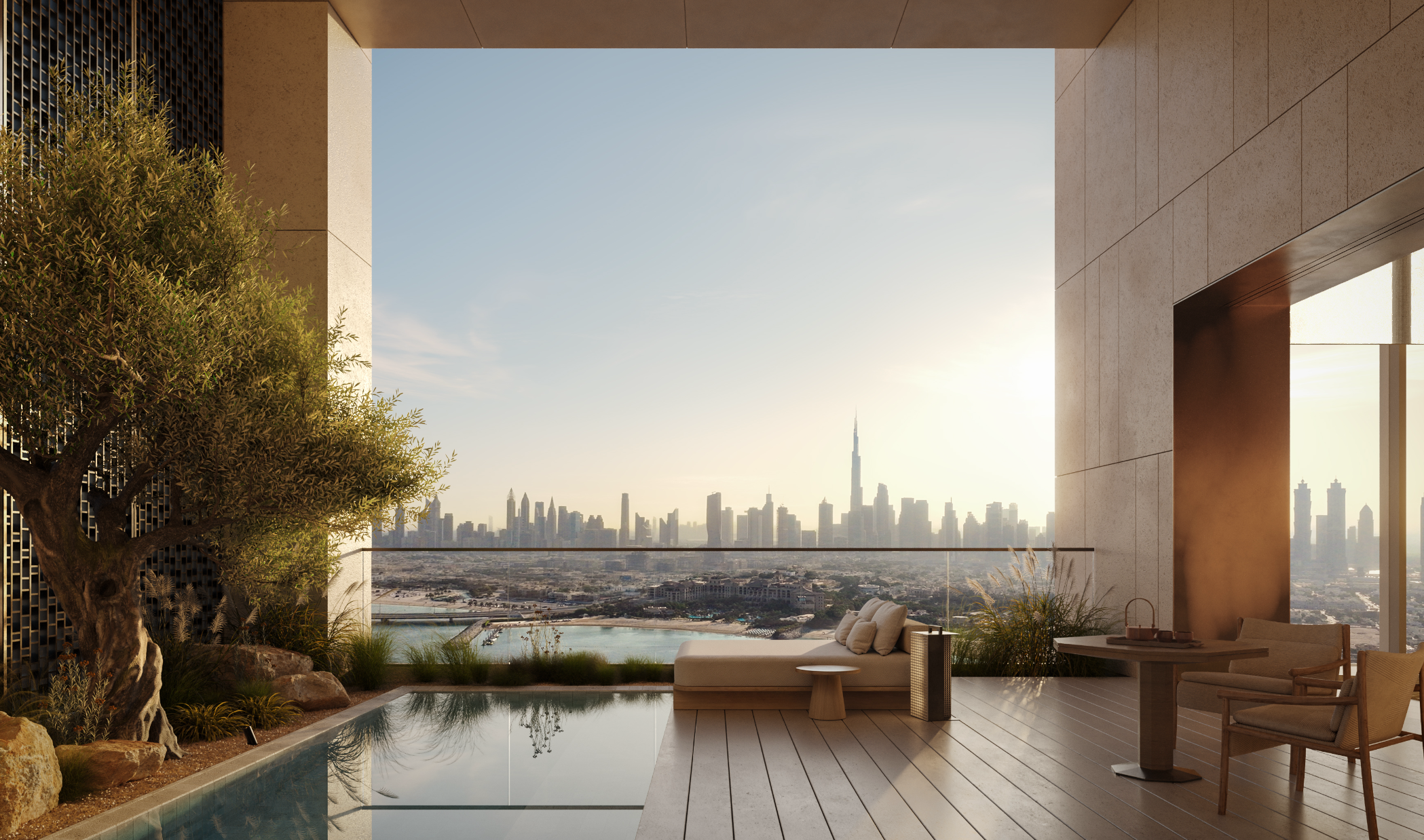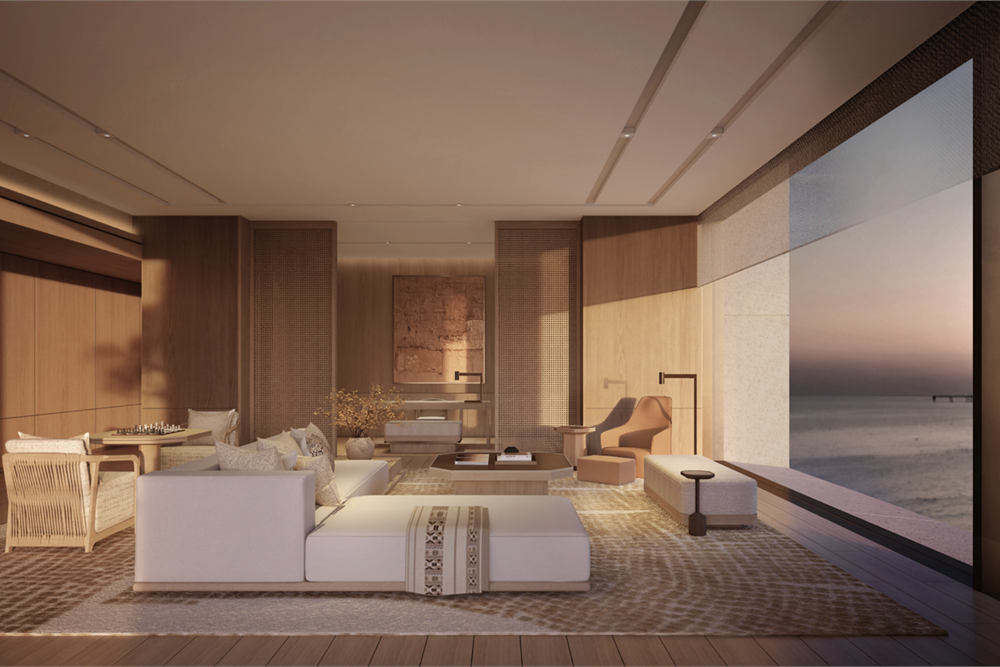 Designed by KHA, Aman Dubai sits on the exclusive Jumeirah Beach Peninsula with uninterrupted views of the Gulf and Dubai’s skyline. Set within nine acres of lush gardens, this 5-bedroom residence reflects Aman’s signature minimalist aesthetic, using natural materials and desert-tone stone to create a serene, contemporary retreat. Inspired by regional architecture, the design blends courtyards, subterranean pathways, and private gardens into a seamless indoor–outdoor living experience.