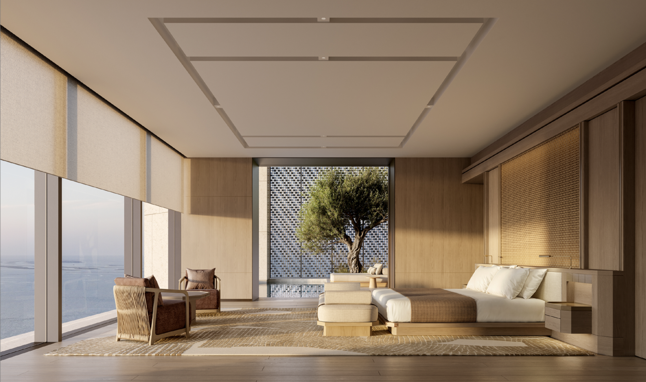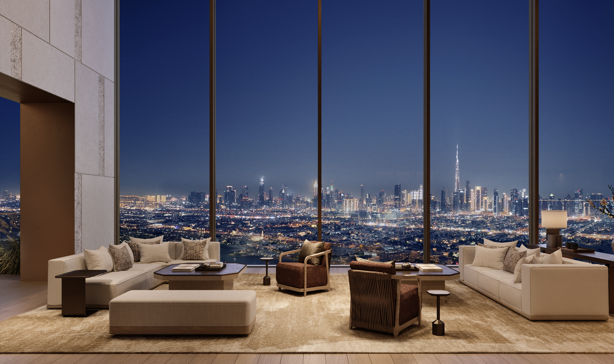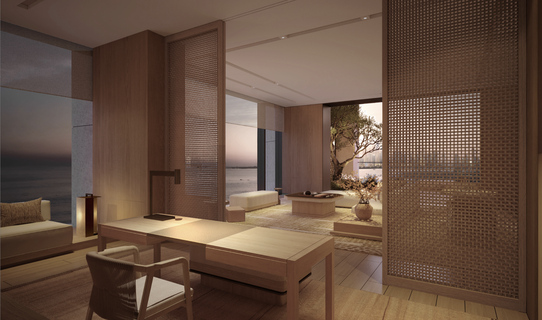 Designed by KHA, Aman Dubai sits on the exclusive Jumeirah Beach Peninsula with uninterrupted views of the Gulf and Dubai’s skyline. Set within nine acres of lush gardens, this 5-bedroom residence reflects Aman’s signature minimalist aesthetic, using natural materials and desert-tone stone to create a serene, contemporary retreat. Inspired by regional architecture, the design blends courtyards, subterranean pathways, and private gardens into a seamless indoor–outdoor living experience.